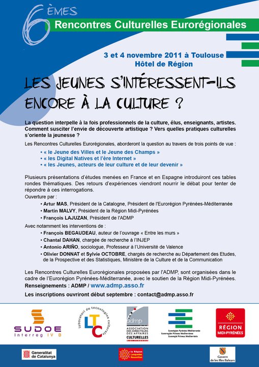 Se realizan el 3 y 4 de noviembre del 2011 en Tolouse (Francia) y están organizadas por la ADMP – Association des Directeurs des Affaires culturelles de Midi-Pyrénées.