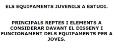 Els Equipaments juvenils a estudi. Principals reptes i elements a considerar davant el disseny i funcionaments dels equipaments per a joves.