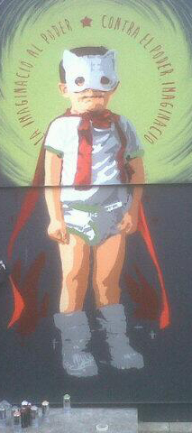 La foto és un stencil de RocBlackBlock a 9Barris. La imaginació al poder i la imaginació contra el poder.