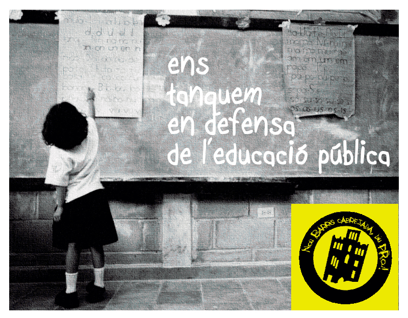 Des de l’Assemblea Groga de Nou Barris i la Coordinadora de Ampa de Nou Barris ens conviden a que ens tanquem amb ells a dues escoles del districte de 9Barris sota el lema: “Ens tanquem en defensa de l’educació pública”.