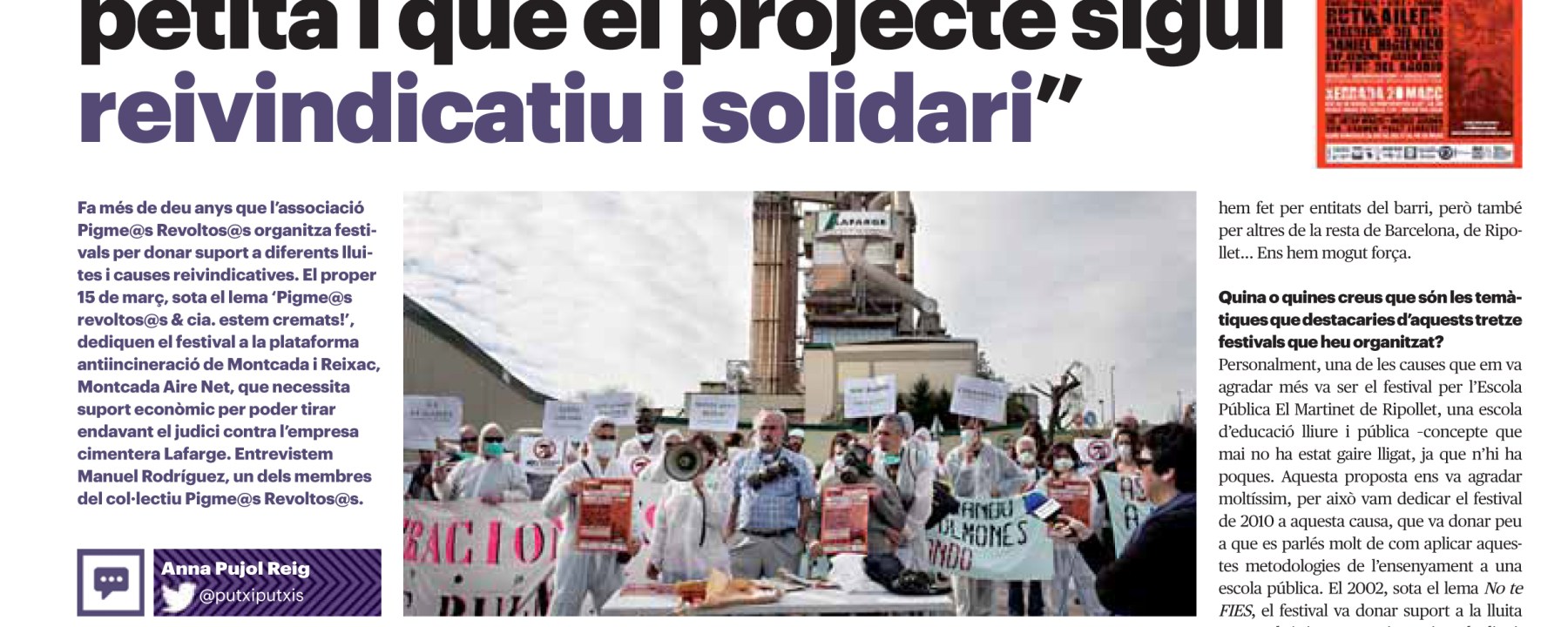 La solidaritat veïnal a través dels Pigme@s Revoltos@s i Cia.! És un col·lectiu de veïns i veïnes de Nou Barris que des de l’any 1999 realitzen festival solidaris per a projectes socials que ho necessiten. L’Anna Pujol (@putxiputxis) els va fer una entrevista al setmanari La Directa que ho explica molt bé!