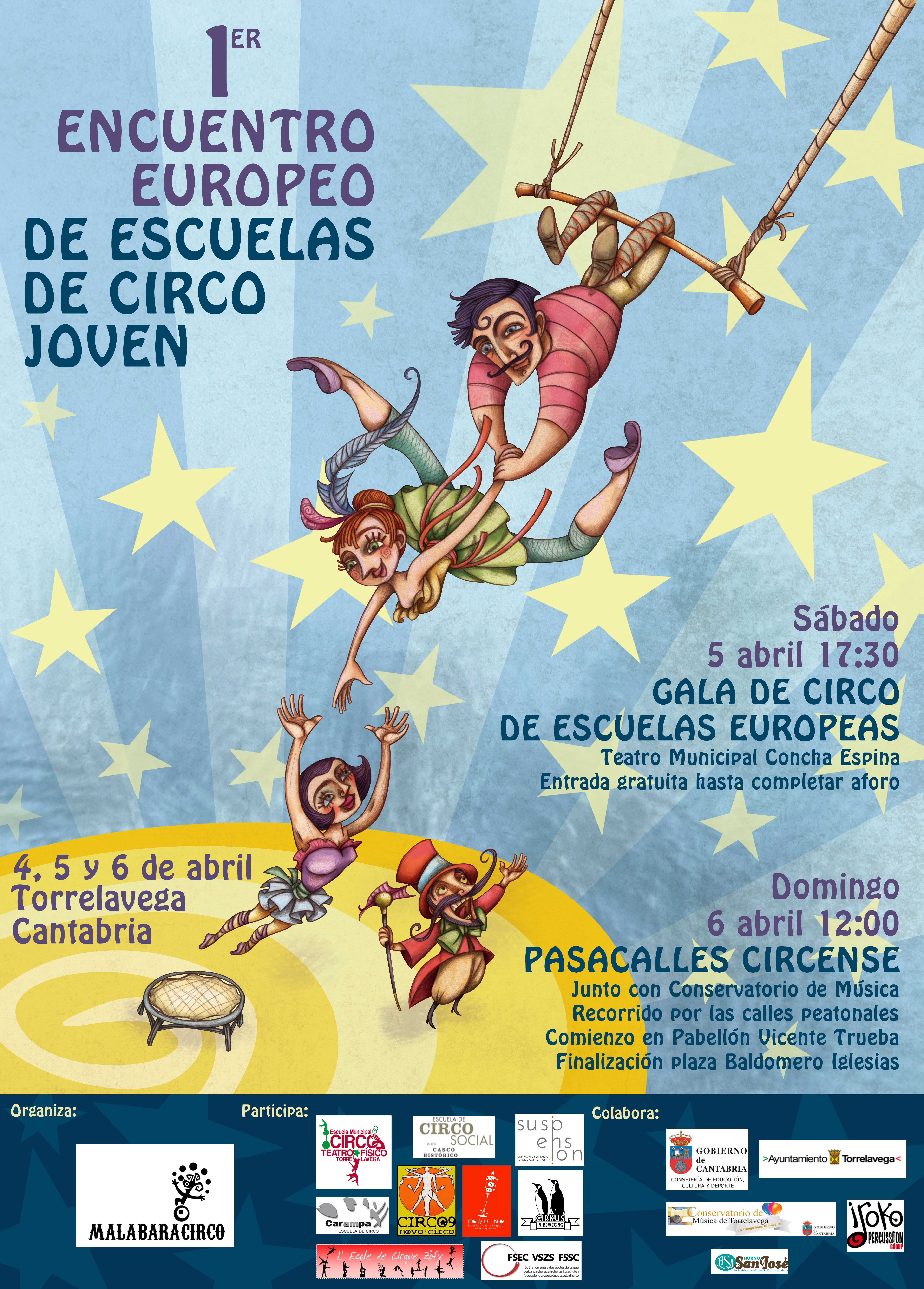Malabaracirco y la Escuela de Circo y Teatro Físico de Torrelavega, Cantabria, han presentado este año el 1er Encuentro Europeo de Escuelas de Circo Joven. Los pasados 4, 5 y 6 de abril de 2014, Torrelavega, Cantabria, se ha vestido de Circo, para albergar alumnos llegados de diferentes Escuelas de Circo Joven.