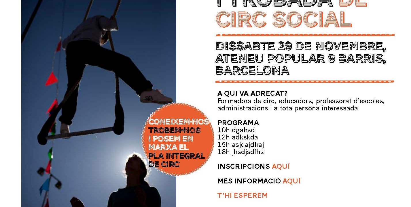 Davant de la necessitat de re-conèixer-nos, trobar-nos i posar en moviment els objectius del II Pla Integral de Circ la Comissió de Formació de l’APCC organitza la Trobada de Circ Social de Catalunya el 29 de novembre a l’Ateneu Popular 9Barris (C/Portlligat, 11-15, Barcelona) de les 10h a les 18h amb el següent programa: