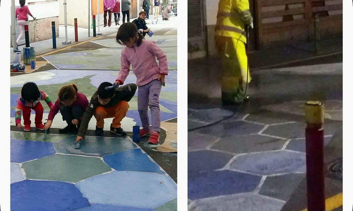 Aquest mateixos veïns, fa unes setmanes, han iniciat una campanya per poder mantenir els carrers amb color. La seva demanda és deguda a que l’ajuntament ha iniciat la neteja de les pintures fetes a l’asfalt del carrer Freixues i a la plaça de Santa Caterina quatre dies després de la seva realització. Expliquen que tot i que el permís del consistori deia que això passaria “és molta la gent del barri que han manifestat que el conjunt pictòric donava vida i color al barri de Santa Caterina, i que se senten decebuts amb la decisió d’esborrar les pintures”.