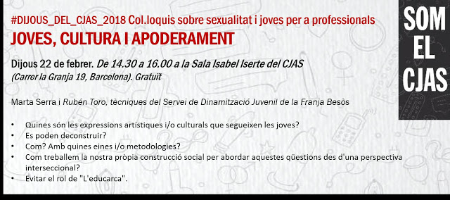 Dijous 22 de febrer de 14.30 a 16h a la Sala Isabel Iserte del CJAS (Carrer la Granja 19, Barcelona). Gratuït.