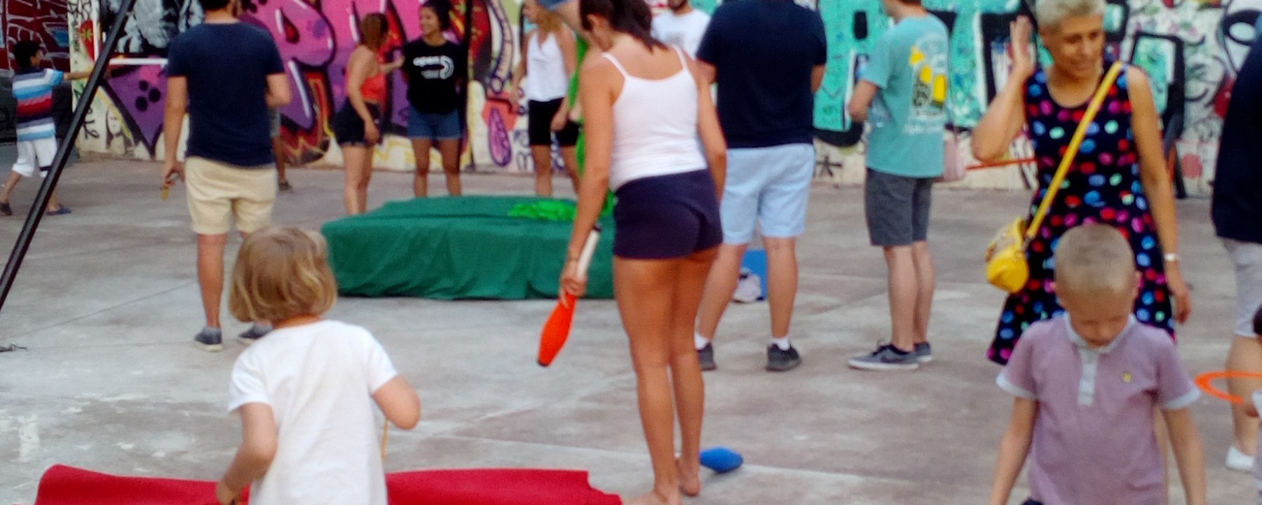 Este mes de junio en un “no lugar” de Ciutat Vella un montón de organizaciones celebraron un acto que vinculaba el circo y las personas refugiadas. Particpé en la mesa redonda y disfrutando del taller.