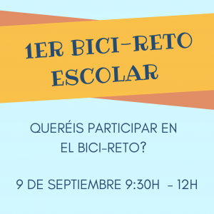 Las y los amigos de Biciclot organizan el 1er Bici-Reto escolar, el 9 de septiembre de 9:30h a 12h para que las escuelas vayan a conocer la nueva sede de Biciclot y el catálogo de actividades para este próximo curso.