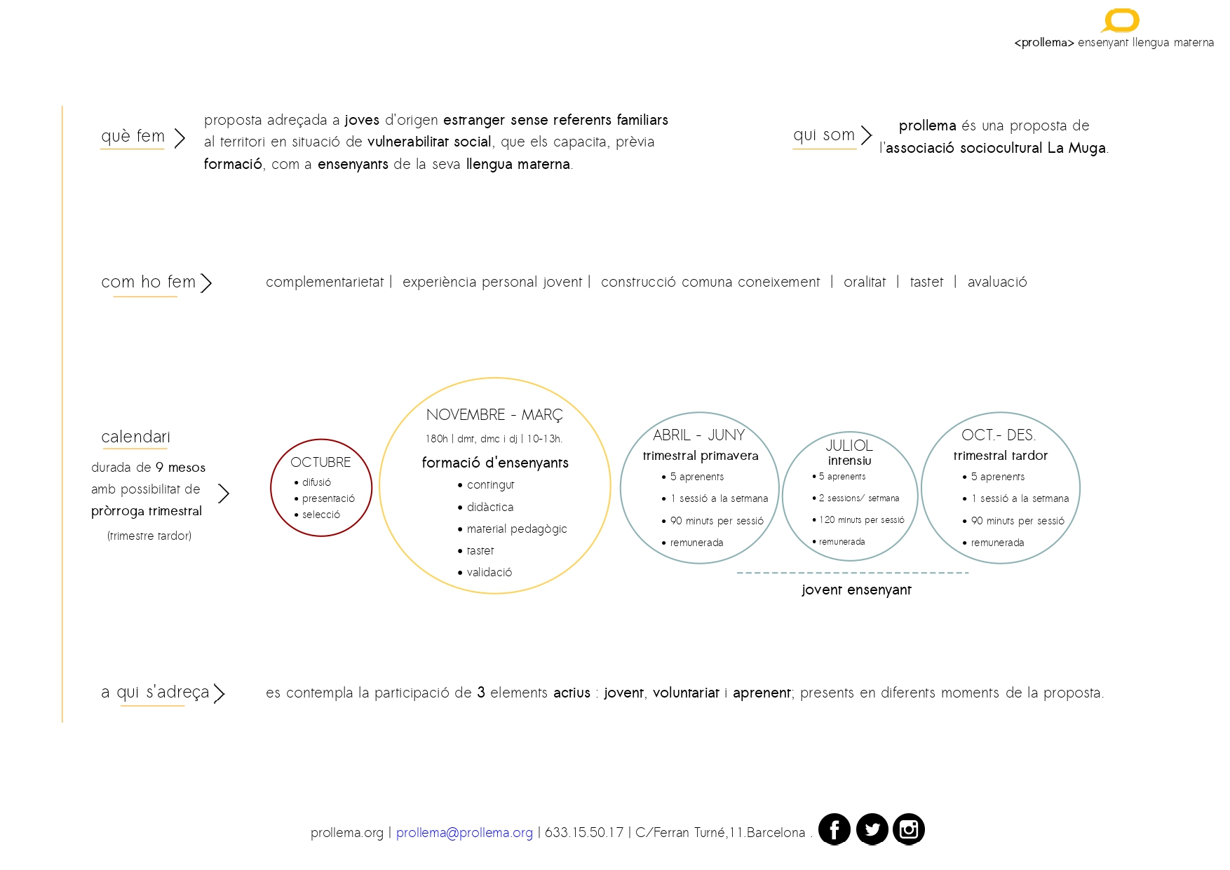 Podeu disposar de més informació accedint a la web (www.prollema.org)o bé seguint a les respectives xarxes socials ( twitter, facebook i instagram)