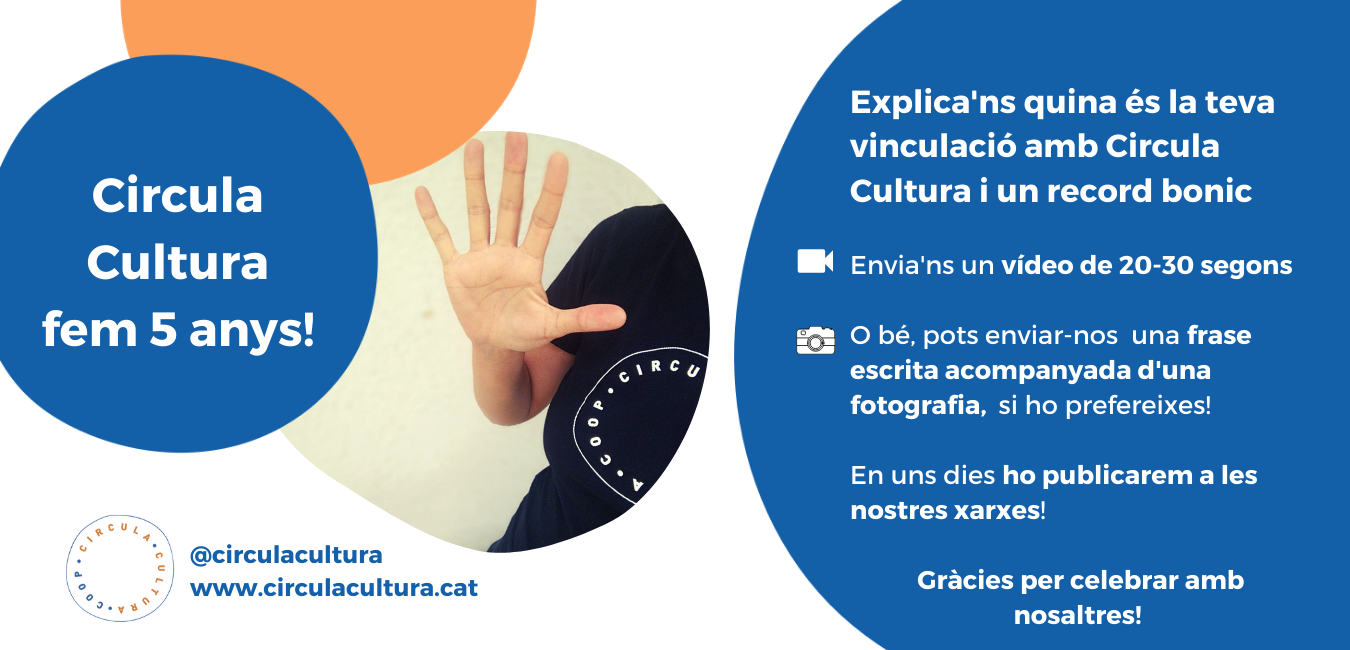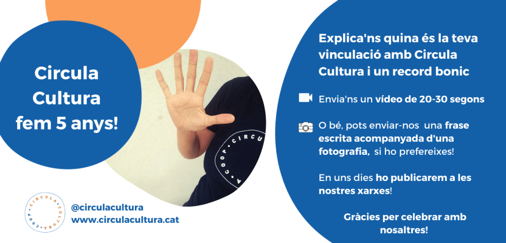 Ens fa molta il·lusió compartir amb tu l’aniversari de Circula Cultura. Aquest 2020 fem 5 anys !!