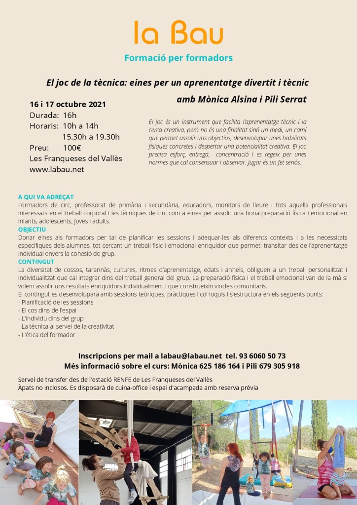 Més informació sobre el curs: Mònica 625 186 164 i Pili 679 305 918