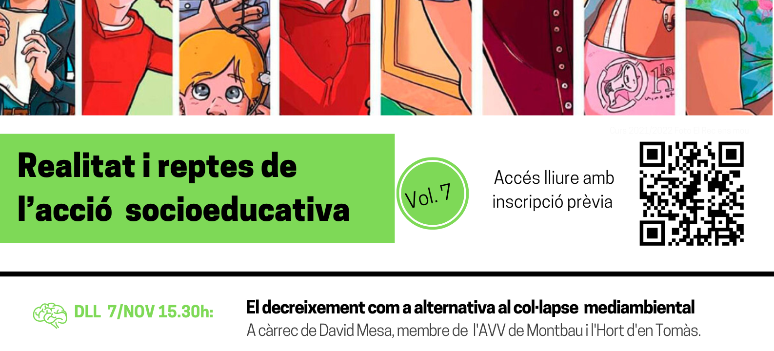 - Dilluns 7 de novembre a les 15.30h. El decreixement com a alternativa al col·lapse mediambiental. A càrrec de David Mesa, arquitecte i membre de l’AVV de Montbau i l’Hort d’en Tomàs.