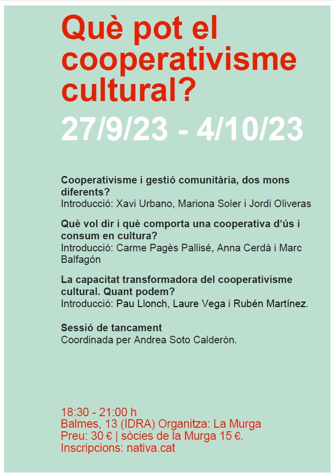 Els i les companyes de la Cooperativa La Murga plantegen un seminari ven interessant en un moment de creixement de propostes culturals que situen el cooperativisme com a marc d’organització.