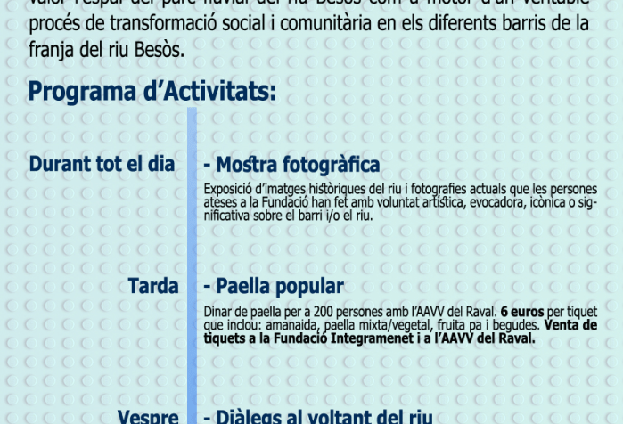 El proper 30 de juny, en el marc de la Festa Major del barri del Raval de Santa Coloma, la Fundació Integramenet ha organitzat una jornada festiva i cultural amb … Continue Reading Diàlegs al voltant del Riu Besòs