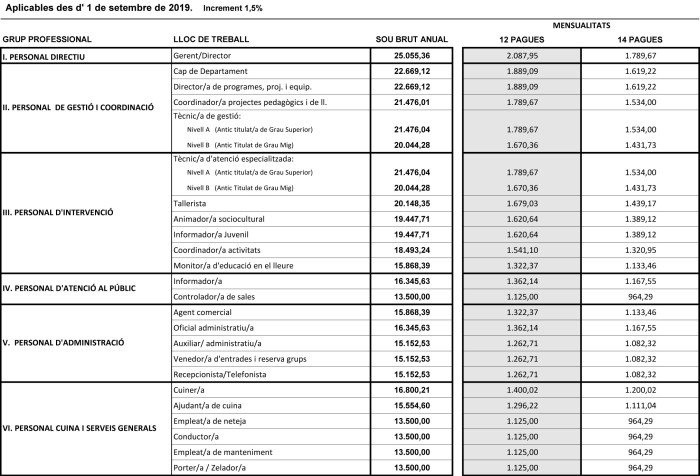 Acord parcial del conveni sectorial Lleure Educatiu i Sociocultural de Catalunya per a les taules salarials de 2019